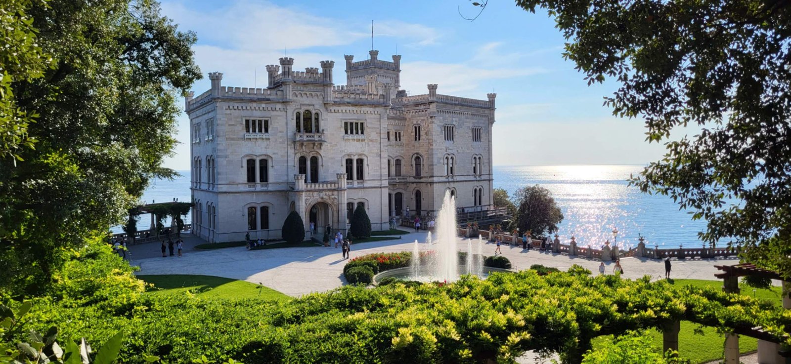 What makes Miramare unforgettable isn’t just the building or its story — it’s the setting. From the castle terraces, you see the curve of the Adriatic, the cliffs of Trieste, and even the faint outline of Istria on a clear day.